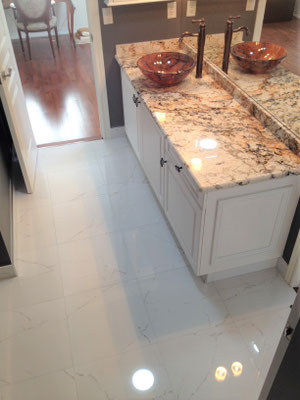 Contemporary porcelain tiles are often rectified and polished, especially in the modern 24” x 24” (60 cm x 60 cm) format and larger; some simulating marble.